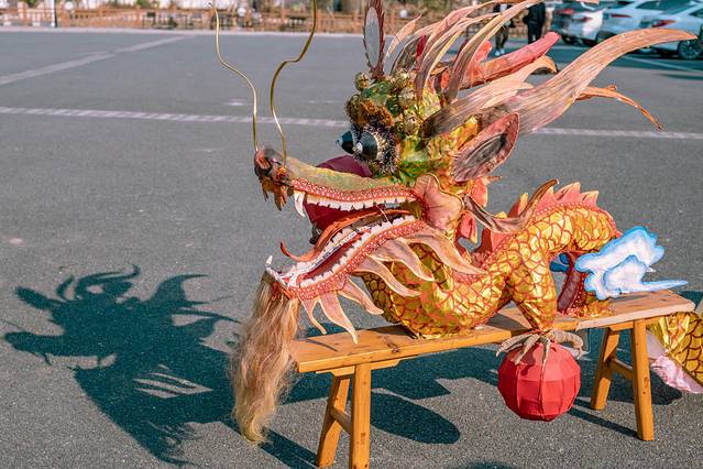 长度也增加到了120多节,大概能有200多米长,在重大节日的时候可能会幸运的看到。随着音乐响起,阿姨们摆好造型,最好最后的准备,因为现在没有那么多人在村里,表演的人少了,板凳龙选用了节数较少的。