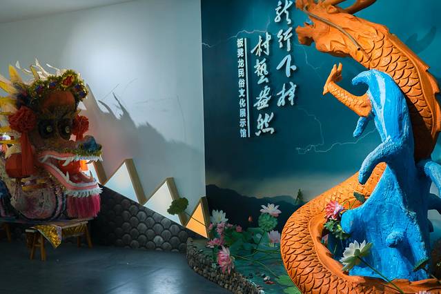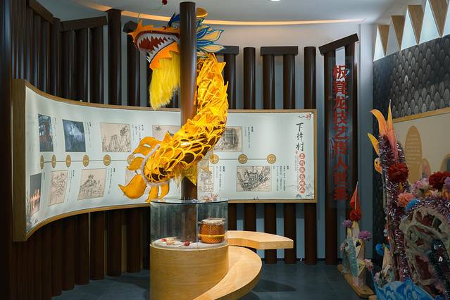 板凳龙是在下午的时候开始,在等待的间隙,便走进了文化礼堂下梓客厅,参观了板凳龙文化展示馆,在这里可以很清楚了解到下梓村板凳龙的发展历史及制作方式,下梓村拥有着300多年历史的板凳龙,代代相传,到现在已经传到了第11代,板凳龙由龙头、龙中段、龙尾三部分组成。