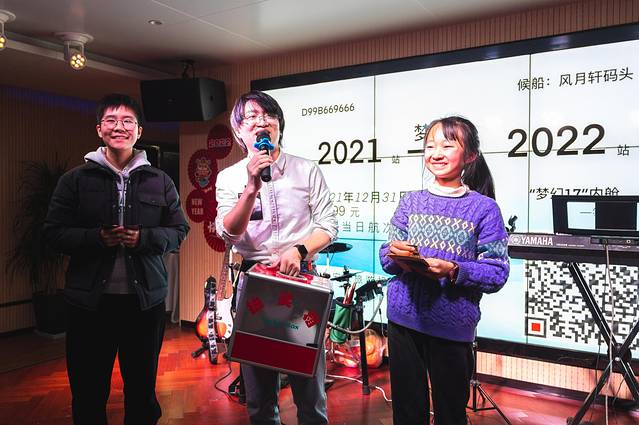 这次“梦幻17号”游船主题就是跨年,由2021年航向2022年,伴随着一首首亦欢快、亦怀旧、亦动听的歌曲,现场氛围逐渐热烈了起来,家人在此团聚,爱人在此甜蜜相伴,三五好友举起酒杯敬你我、敬未来!