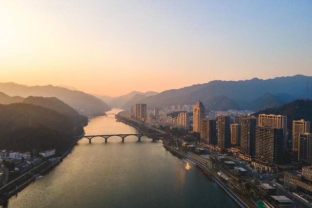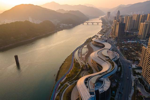 建德博物馆坐落在17℃新安江畔,是建德市首座综合性博物馆,那造型灵动的建筑外形设计别具一格,融合了自然山水之美,航拍视角下,博物馆与新安江交相辉映,散发出迷人的魅力。