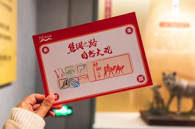 参观完展馆,在入口处还可以获得一份精美礼品,盖上丝绸之路沿途极具地标的建筑或人文的章印,留作纪念。