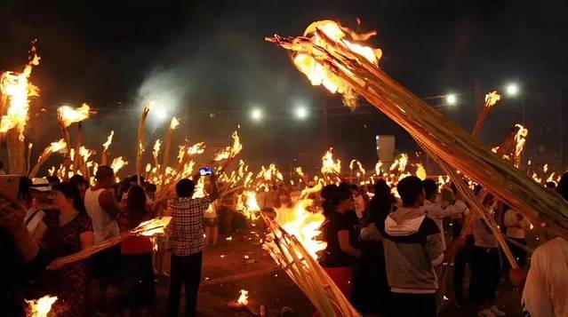 彝族“火把节”是彝族地区的传统节日,成千上万名彝族同胞和其他民族同胞欢聚在板底海草赛马场,欣赏彝族古歌,观看摔跤、文艺演出,参加篝火晚会和火把狂欢等活动,共同欢度节日。