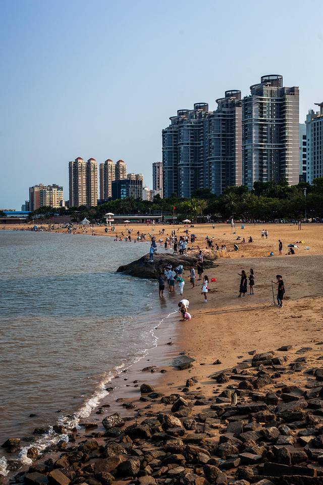 朝一旁望去便是海滨泳场,沙滩占地面积117630平方米,是南中国唯一、国内少有的位于城市中心的沙滩,向北可以远眺珠海渔女,向南能望港珠澳大桥和九洲岛。