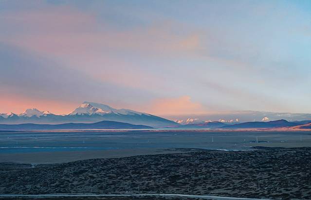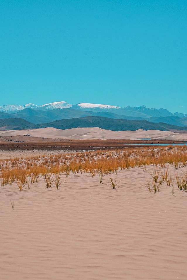 远方雪山与连绵沙漠相互守望着,忽而间就收获一份来自广袤天地间的高原浪漫。
