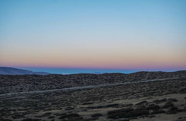 在高原这片土地上,真的每分每秒都能收获意想不到的惊喜。一路前行,随着天色渐亮,遇见晨曦中的雪山,看着粉色朝霞铺满天空,漫过天际。是朝霞的魅力吧,连高原清晨时分的寒冷也变得热情起来。