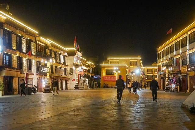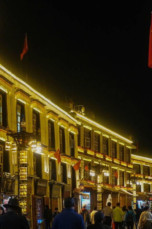 夜幕下的八廓街,藏着拉萨古城的万千烟火气。漫步在这里,时间好像静止了一样,整个人也变得安静放松下来。