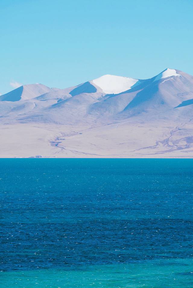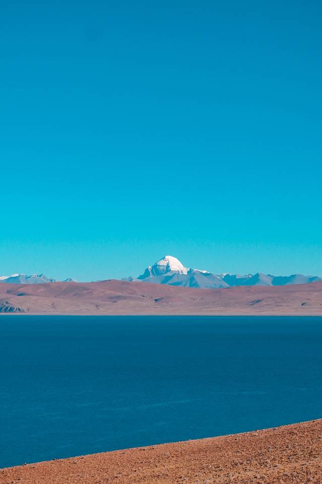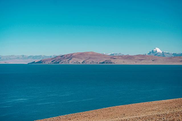 与玛旁雍措相邻的拉昂措,就像一块硕大的蓝宝石散落在这片土地上,那蓝得透彻的湖水,是令人心醉的高原蓝。站在湖边,远眺对面的冈仁波齐神山,神秘又壮观。