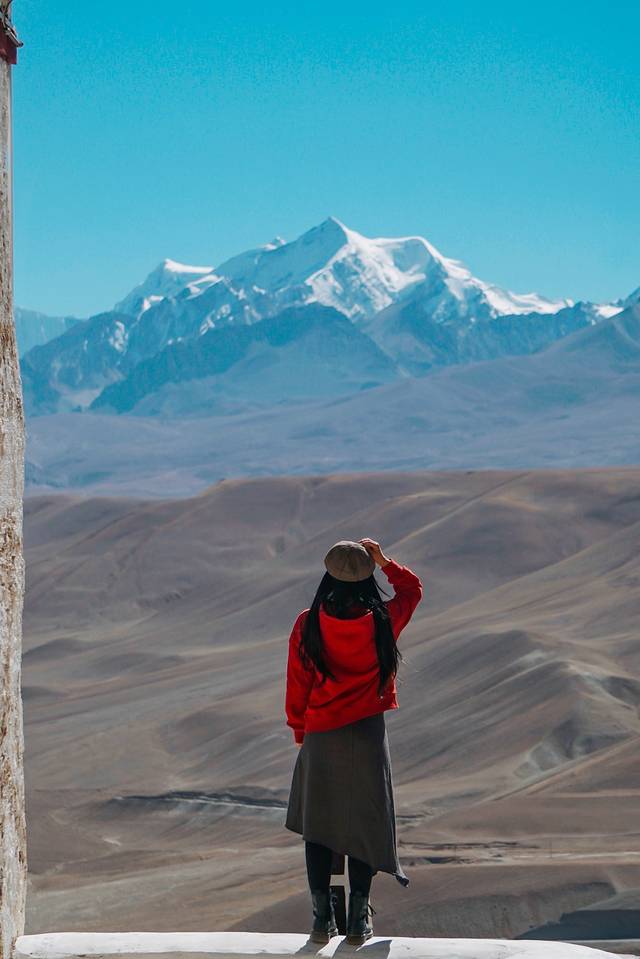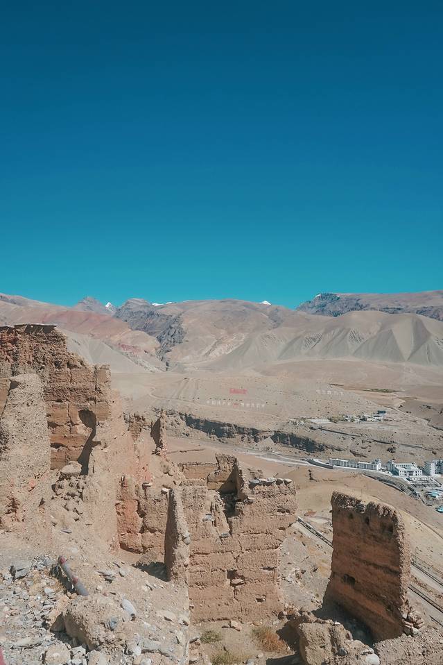在普兰县城,有一条不起眼的小路,沿着蜿蜒向上的公路行驶到山顶,有一片古城废墟和香柏林寺遗址,四周环绕着雪山,站在顶山放眼望去就是喜马拉雅山脉。