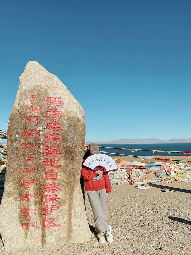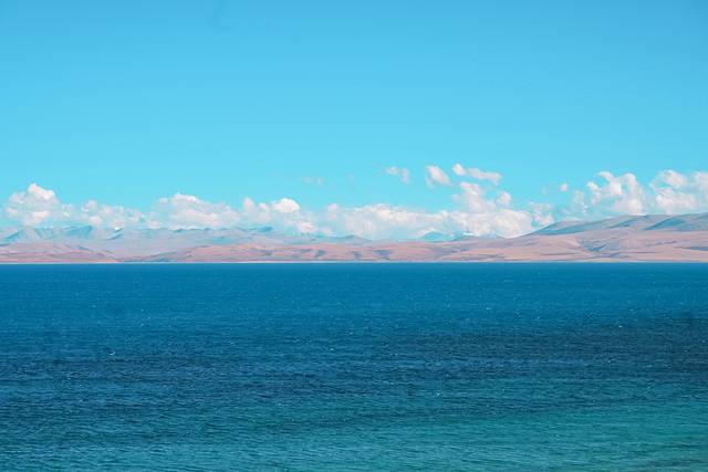 玛旁雍措的蓝,与我之前看到的湖泊的蓝有点不一样,它就像一块巨大的蓝宝石展现在我眼前,蓝得更深邃,在阳光的照耀下,幽蓝的湖面上闪耀着星星点点的光,湖泊、雪山与蓝天融为一体,让人仿佛置身人间仙境。