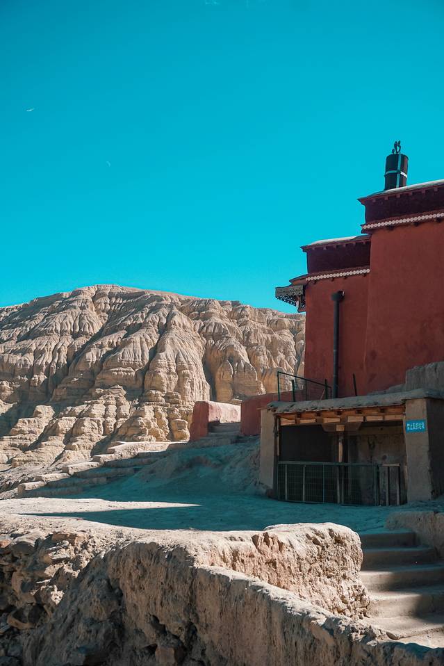 ◼这里不算景点,所以知道的人不多。我们是从札达土林往古格王朝方向走,出了县城不远在左手边有一条小路,旁边是一条小溪,往里面走大概10分钟就可以看到。