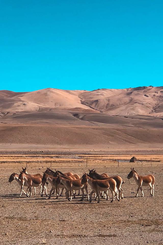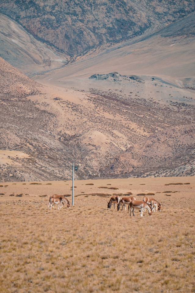 前往古格王朝路上,日光像礼物洒在高原大地上,万物生灵在日光里撒欢,这片广袤的地方满目荒野,公路两侧像是闯进了野生动物世界,都是可爱的动物。