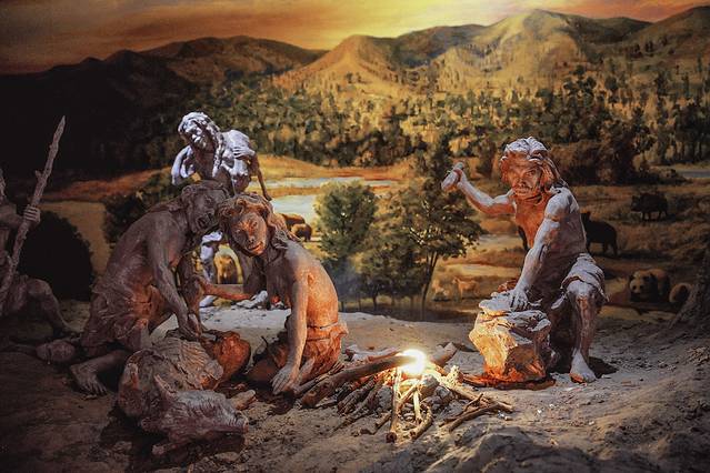 和其他省市博物馆一样,开篇都是各种原始人钻木取火,拿石头捣鼓各种食物的场景模型,相似度不能说百分百也有百分之80吧,严重怀疑是同一个模具工厂生产的。