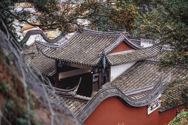 烟台山是这些年曝光率很高的网红拍照景点,从民宿过去不算远,起了个大早退房出发,为了节省时间,还是打了车。下车的地点名叫烟台山公园,在一个斜坡边。高楼环绕之中的一片郁郁葱葱,几位老大爷在亭子里拉着家常,完全没有注意我的出现,第一个发现的是水池里的乌龟,慢悠悠地向我靠近,一点也不怕人,后来,蚊子也发现了我…
