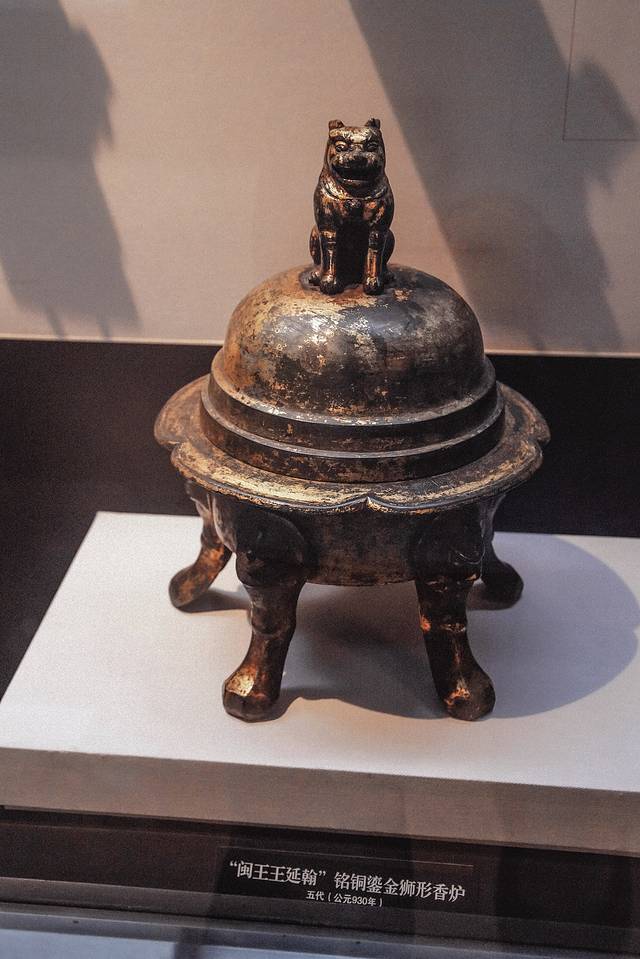 第二代闽王王延翰的铭铜鎏金狮形香炉