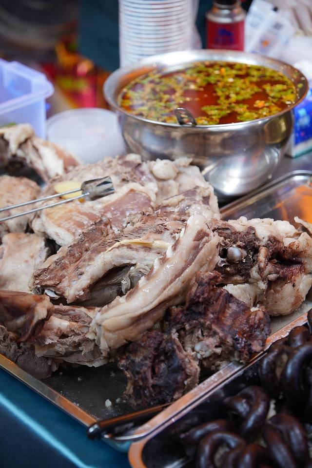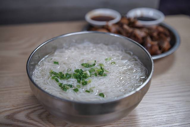 捞化其实就是细粉,汤头甘甜爽口,旅途中就喜欢一些汤汤水水。酱鸭大杂烩这分量倒是惊呆我了,除了酱鸭还有卤蛋、腐竹等等,这些食材大体都是一个味道,毕竟是一锅酱汁卤的,咸鲜可口,确实是香,不过口感就各不相同啦,吃的时候可以直接吃、蘸酱吃,或者拌进捞化里吃,总之差点第一家店就把我吃到打道回府了。