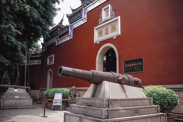 沿着林荫小道慢慢踱到昭忠路,到处都是修地铁的围挡,经过路人指点才找到昭忠祠,醒目的红墙建筑便是了,昭忠祠也是免费参观的,门口的两门大炮相比石狮子更显得威严,不知道大炮是不是当年战场遗物。大中午的,昭忠祠只有零星几位游客,倒是保安很热情,提醒我一定要去后山上看看。