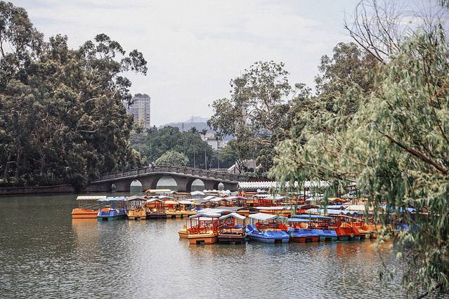 别过朋友之后,一个人踏上去博物馆的路,3公里,ok,骑车去,不过显然我低估了福州的交通,自行车道偶尔都会堵塞,总算外卖小哥们开道,顺利到达西湖公园的南大门。咦,不是说好的去博物馆,怎么就去了公园了?原来福建博物院选址在西湖公园与左海公园之间,不管从南面还是北面都得穿过公园,唯一能通汽车的是西门,那可得在烈日下再踩一阵子自行车才能到,既来之则安之,西湖公园也可以顺便看看嘛。