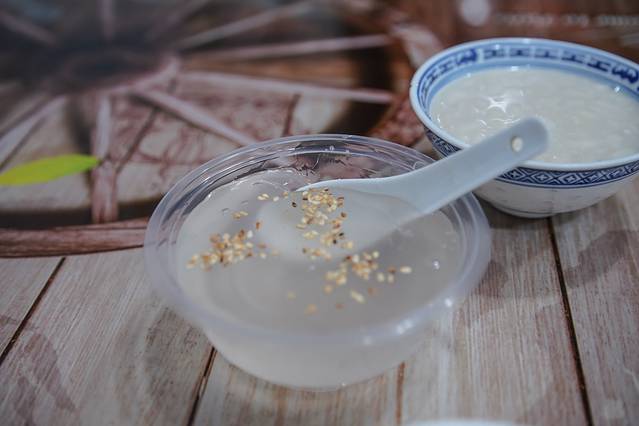 说实话,花生汤味道和厦门的差不多,不过甜度会更甜一些。但是花生分量给的很足,相比厦门某家老字号那“杯装”,真的是很良心,当然价格也很nice。芋泥是福州的一大特色,记得课文里,林则徐智斗洋人里,就是用的芋泥把洋人烫的哇哇叫,值得一提的是,林则徐就是福州人。这个芋泥也是甜的,上面撒上芝麻粒,入口一定要小心,是烫的,吃起来松软绵柔,味道也是很甜。藕粉有点像果冻的质地,但是很稠有胶质,要用力才能切断,吃的有些费劲,反而没有那么甜了。