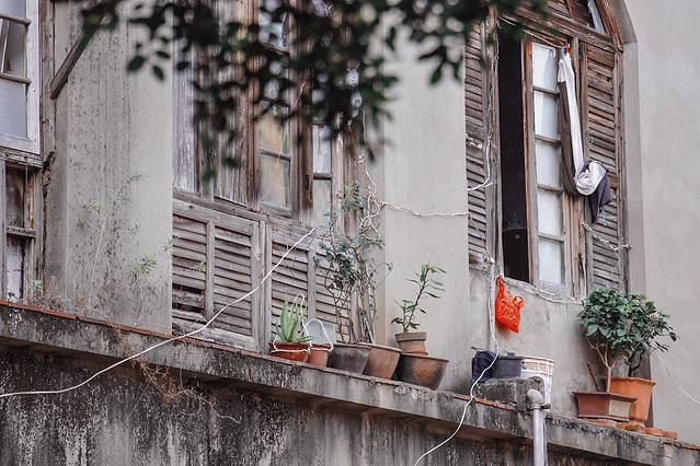 沿着闽海关税务司门前的乐群路继续往前走,两侧建筑大多是破败的外墙、马蹄形的窗户,这些挂着不可移动文物的老建筑,有一些还有生活的气息,偶尔会有上了年纪的主人家谨慎地看着我这个不速之客。