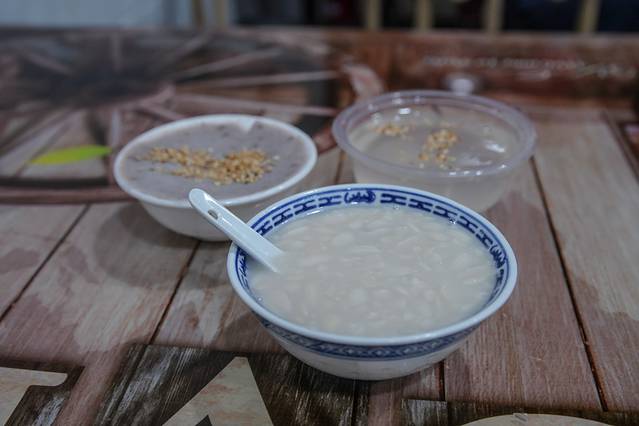 原本就想点一份花生汤的,可是它们家价格实在是有够便宜啊,再加上大姐太热情,推荐这个推荐那个,没忍住,于是花生汤、芋泥、藕糕齐刷刷地摆了一桌子,看着旁边那桌一人一份花生汤,一边吸溜着一边看着我表演,我怎么就没能管住手呢?好吧,点就点了,那就开吃。