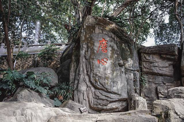 由追思亭边上的石阶梯扶摇而上,路上经过“铁石同心”石刻,这是民国11年海军总长李鼎新的题字,李鼎新也是福州船政学堂毕业,曾在船政舰队旗舰“扬武号”实习,后出国留学,马江海战很多将士都曾是他的同僚,后来他也随北洋水师参加了甲午海战。