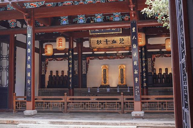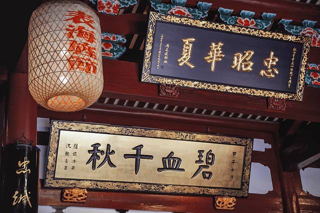 昭忠祠是中法马江海战与中日甲午海战阵亡将士合祀庙,也被称为海军庙。正堂的牌匾“碧血千秋”四个大字由海军名将萨镇冰提字,书画家沈觐寿书写,两个大牌位分别写着“甲申海战忠勇殉国将士之牌位”以及“甲午海战忠勇殉国将士之牌位”。两侧则分列着当时阵亡的各军舰管带等高级军官的灵位,难得的是正堂两侧墙上将两场海战的阵亡士兵名字都一一记录下来,很是详细,使得英魂不论官阶大小都能得以入祀。