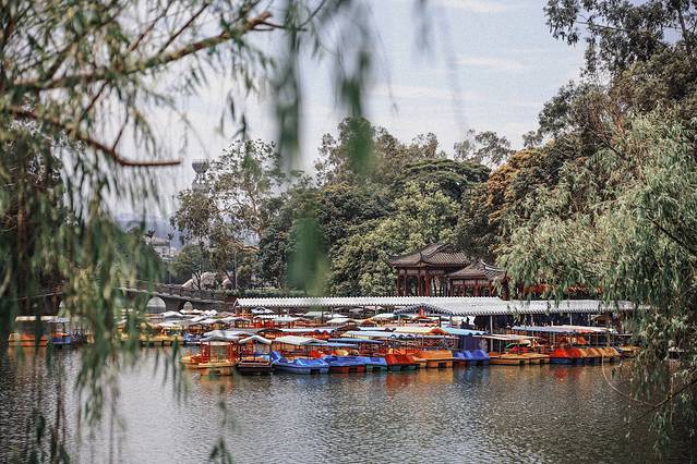 进门后经过一条长长的大桥,两侧柳树成荫,微风轻拂,还蛮有诗意的,湖面停泊着大大小小彩色的游船,看得出有一阵子没有动过了。西湖公园里还有一座开化寺,明嘉靖年间的古刹,康熙年间两次重修。寺院不大,虔诚地进去参观了一会便退出了。