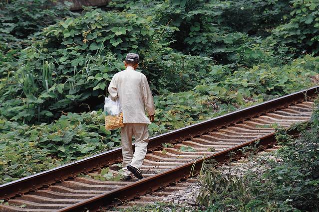 从这里到马尾港有一段距离,按计划会先经过船政格致园,旧时的船政衙门,不过修路却怎么也找不到入口了。兜兜转转,不经意绕到船政格致园后面的马尾实验小学,索性沿着联安路往前行,这条林荫道没什么行人,倒也幽静,从铁栅栏便可以看到船政衙门后面的旧铁路,意外的是,还有很多人沿着这条铁路行走,船政格致园倒也错过了,攻略上说,如今的船政格致园被用来展示与题材不相关的老爷车,那么不看也罢。