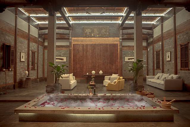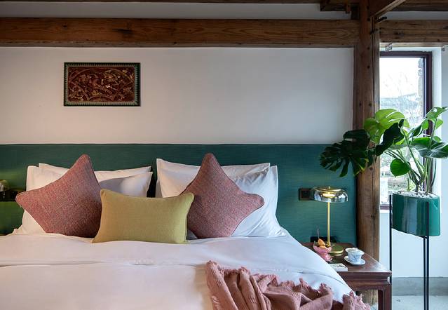 西溪南古村落的游览示意图 据说这里是江南四大才子祝枝山舅舅家,这里面的民宿非常有名而且挺上档次,是拿祝枝山舅舅家改造来的,带小朋友度假来的可以住下沾沾才气,下面上诗莉莉文化遗址酒店照片。