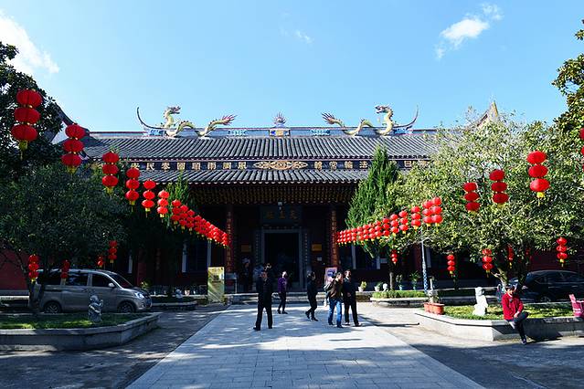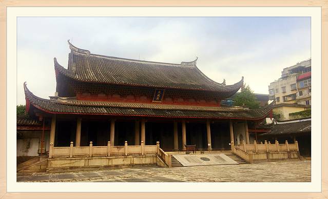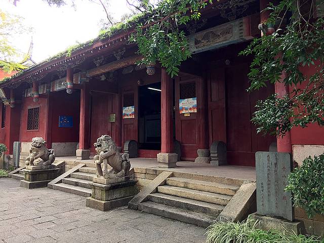福州文庙,又称“先师庙”、“圣人殿”,初为培育生徒的学宫,兼祀孔子,在州城西北。唐大历七年(772年),福建观察使李椅移建今址。位于福州市鼓楼区圣庙路,现存庙宇是清咸丰元年(1851年)十二月至四年(1854年)六月所建。坐北朝南,占地7552平方米,建筑面积4000平方米。有下马碑、棂星门、泮池、大成门、大成殿、孔子坐像、七十二贤人石雕像等~