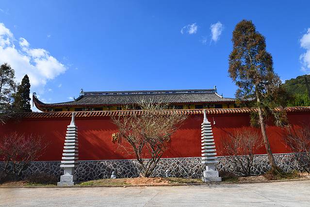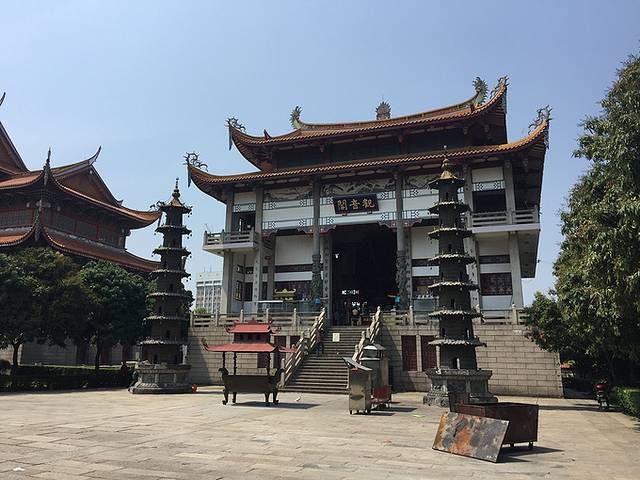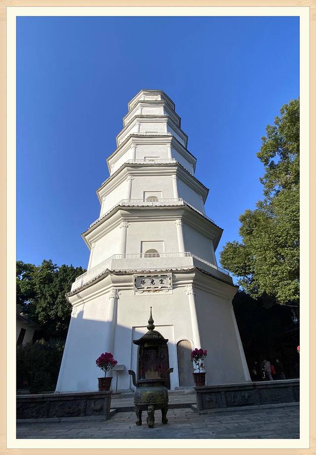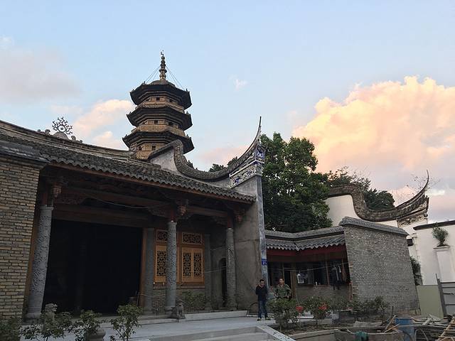 第一进为“天王殿”,第二进为“毗卢殿”,第三进为“法雨堂”,定光塔位于法雨堂后,高41米,七层、八角,外敷白灰。