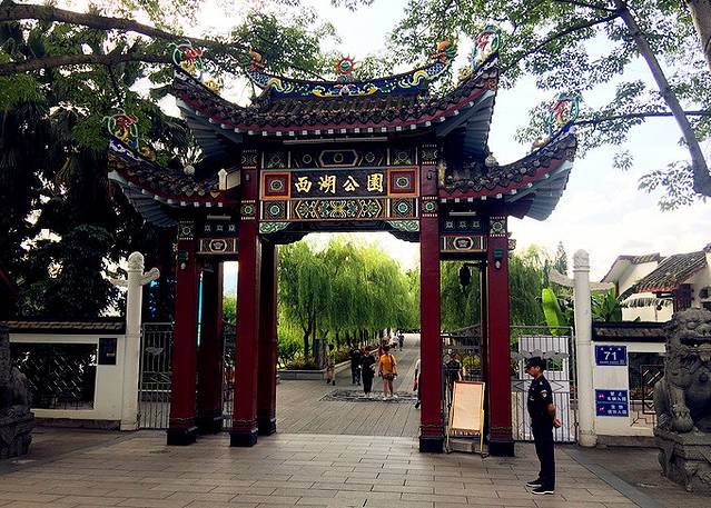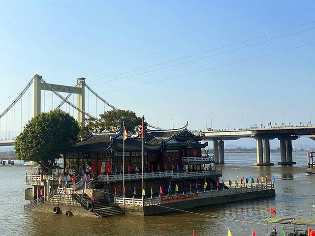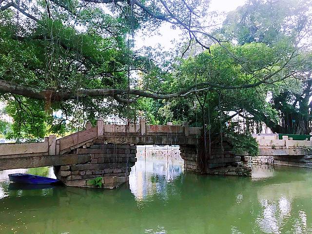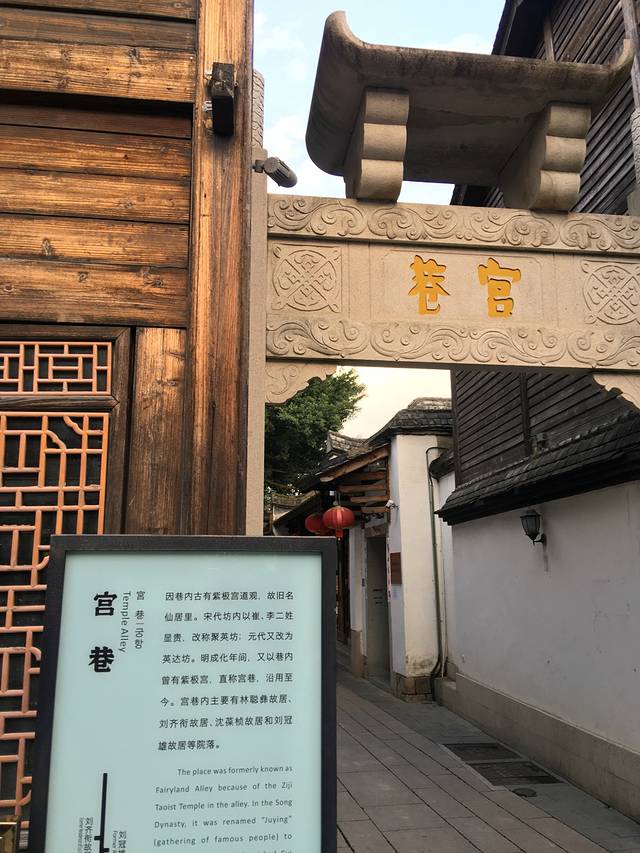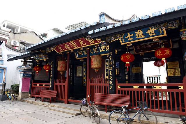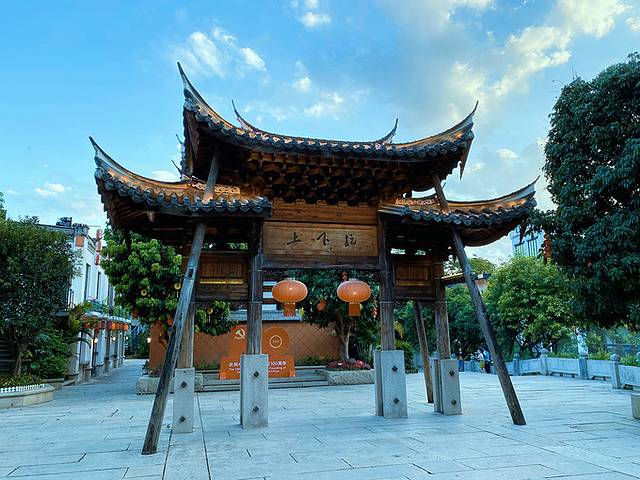 由上杭路往里走不远,左边不远处是尚书庙,纪念着南宋著名爱国民族英雄—陈文龙。尚书庙正前方是三通桥,一座古桥,那斑驳的桥体好似在诉说着历史。 站在三通桥上可以欣赏如同水乡的上下杭。由三通桥下来,就可以看到上下杭的仿古牌坊。