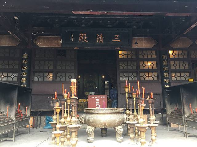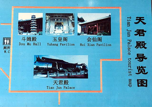相传清初靖南王观依山而建,坐北向南,前施临崖粉墙照壁。山门立于半山坡,门内左右相向祀哼哈二将(山门已毁圮)。拾级而登殿堂,高差达十余米,依次为前庭(左右钟鼓楼)、三清殿、香亭、玉皇阁,阁西侧披霞宫、东侧斗姥宫和东轩等。