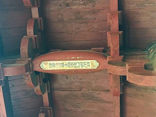 大殿为八架椽屋,大殿有十八根木柱,斗拱和梁架交融在一起,柱子以上几乎全部由斗拱支撑,梁的作用反而比斗拱小,并且不用一根铁钉。