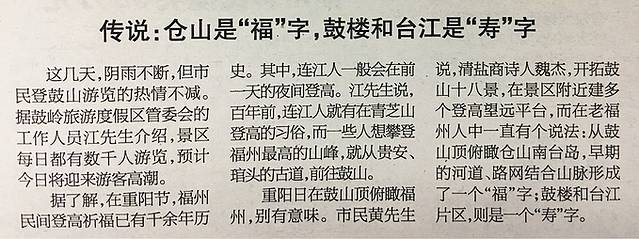 于山位于福州城区中心鼓楼区东南隅,相传汉代何氏九兄弟炼丹于此,因名九仙山。又以闽越王无诸九日宴饮于山,取名九日山。又因古代有一支“于越氏”居此,俗称于山。