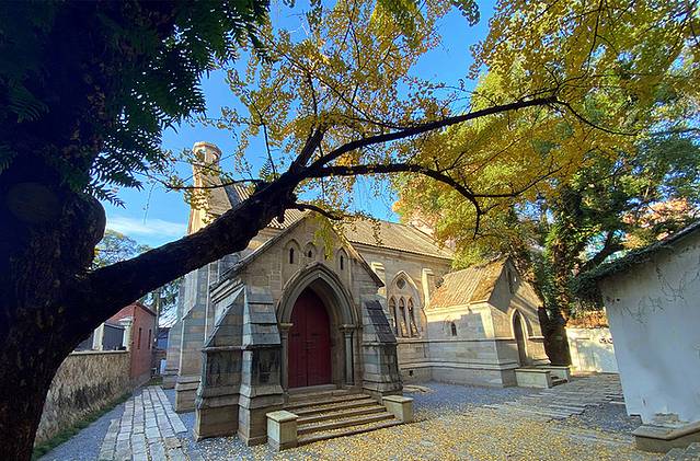 "一座花园,一条路,一丛花,一所房屋,一个车夫,都有诗意。尤其可爱的是晚阳淡淡的时候,礼拜堂里送出一声钟音,绿荫下走过几个张着花纸伞的女郎……"这是叶圣陶1923为烟台山所留下的描述。