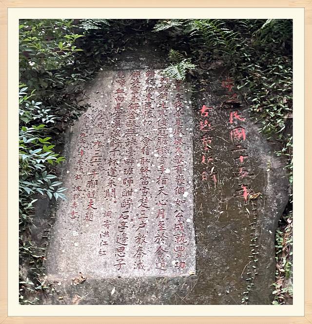 郁达夫“满江红”题记、“誓雪国耻”的题刻。