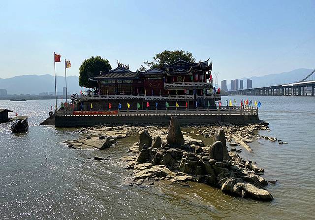 福州金山寺建于宋代,是福州唯一的水中寺。金山寺原是江心的小石阜,因为它的形状象石印浮于水面,有如江南镇江之金山,故曰“小金山”。如今,这里仍可寻见古时的金山寺八景:“洪塘古渡”“石仓秋烟”“妙高钟声”“半洲渔火”“云程石塔”“巴山风帆”“环峰夜月”“旗麓斜阳”