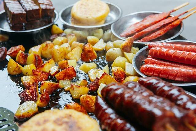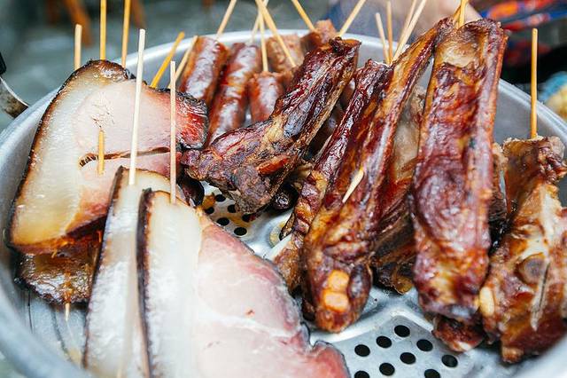 沿着滑道代步而上,安静的在这三两分钟里享受这山野的宁静安逸,在小吃街慢步而上,偶有吆喝声叫卖着香肠腊肉,女友也抗不住这香味诱惑吃上了,我们在美味中踏上去往后山能看到雪景的山顶。