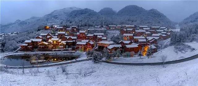 冬天的傍晚,小镇里的彝家人亮起灯光,照亮夜行的路。为一片雪白的冬天点缀缤纷色彩,带来温暖。