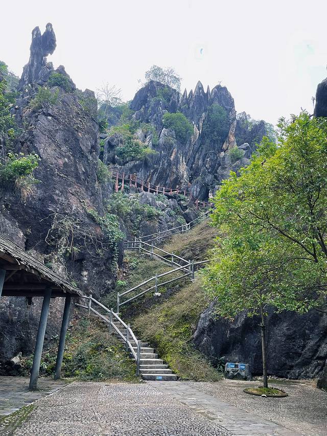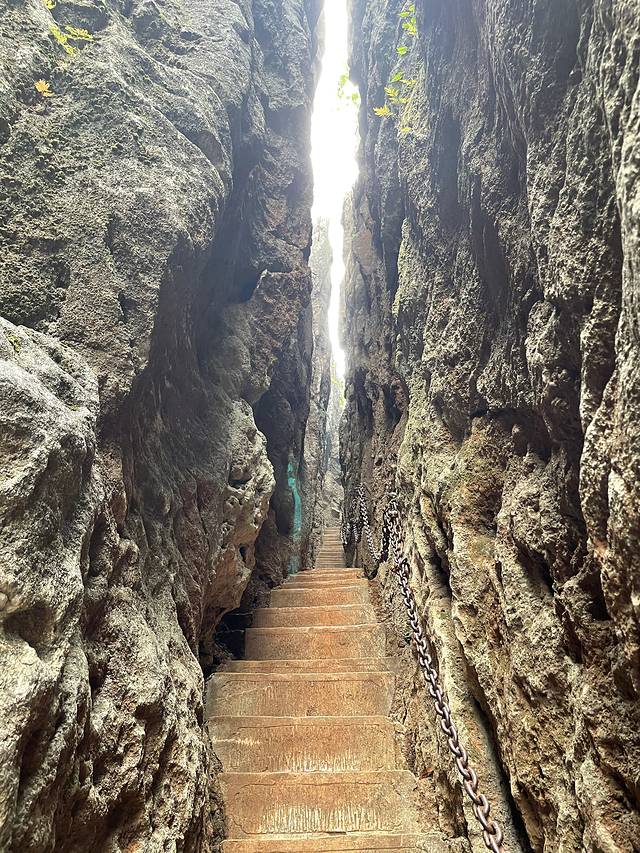 玉石林在其他攻略基本没有说怎么坐车,其实离姑婆山不远,有时间的两个地方都可以去。我就是打平台的顺风车去的,才30块,半个小时就到了。这里最出名的就是一线天的奇妙景观,只允许一个人通过,抬头就能蓝天,听说它的石头都是形成于一亿多年前的侏罗纪时期。