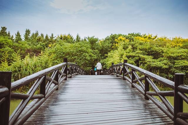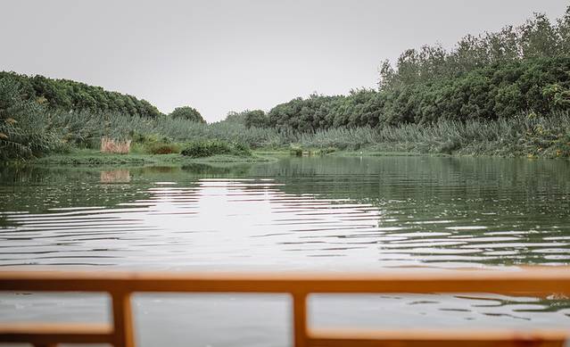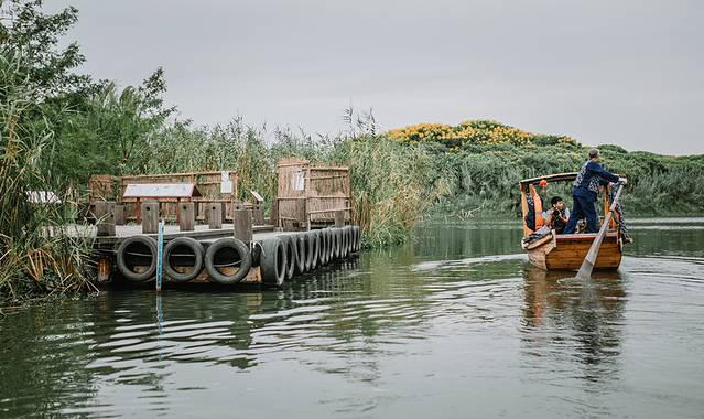 来湿地,总要坐上一回摇橹船。看着蓝花布随着微风轻摆地摇曳,听着船划过水面留下的轻声低吟。有一些思绪,随着荡起的波纹,留在身后。在小船的晃晃悠悠中,误入芦苇荡的深处,寻觅心中的秋日江南。