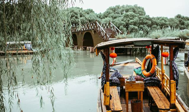 天青色等烟雨,而我在等你。其实没有夕阳的江南,也别有一番轻柔浅淡的意境,让人心旷神怡。与好友一同品茶赏景,感受的也都是最纯粹的水乡韵味。