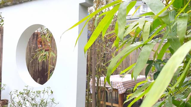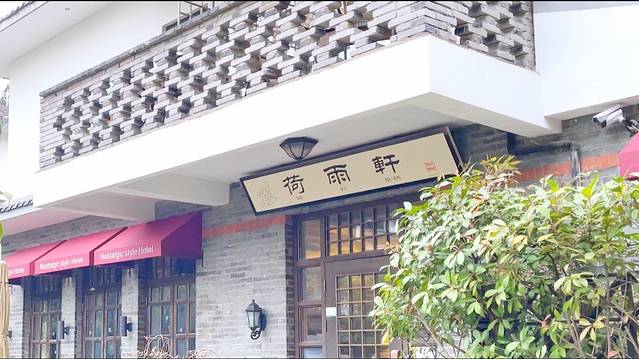 这是一家杭州西湖附近的酒店,民宿环境清幽,周围被绿植包裹着,处处洋溢着勃勃的生机。