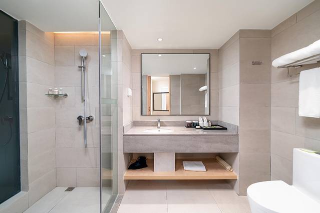 房间的配套也是非常齐全的,进门还有一个专门的穿鞋子的区域,还配上了大大的镜子,搭配衣服真的非常方便;洗漱区域与休息区域很合理地划分开来,洗漱用品也都很高级,用得很舒心,我们一共住了两天,每天都有阿姨打扫卫生,配套都是每日一换的,完全可以放心。
