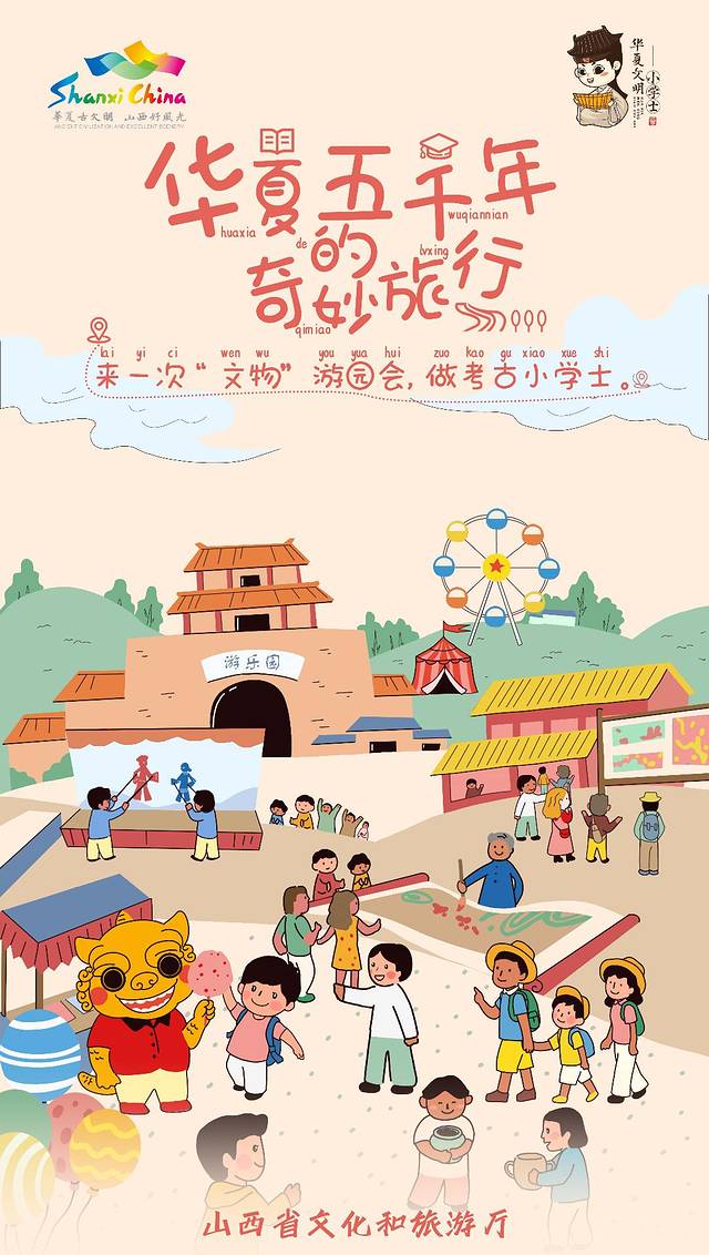 为高效引导青少年及亲子家庭走进有着“中华文明博物馆”之称的山西,学习了解华夏文明的历史脉络,增强文化自信,传承发扬民族优良传统,推出山西“华夏文明小学士”研学品牌。旨在通过优质走读的形式,进一步深耕挖掘山西独特历史文化资源和优质自然资源的价值,赋予当代学生群体更多文化知识和精神食粮。