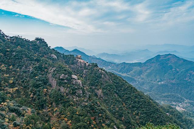 因为是初秋,山峦之上覆盖的植被开始变黄,让绵延的翠绿有了点缀。