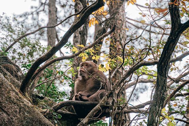 因为在峨眉山见过嚣张的猴大王,各种抢食调戏游客,所以对于九华山的猴子自然敬而远之。