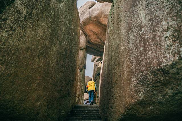 这些无比巨大的岩石如同是上天随意丢掉的石子,散落重叠,形成了一座天然的神奇宫殿。穿行其中,很难相信这一切都是造物主的功劳。