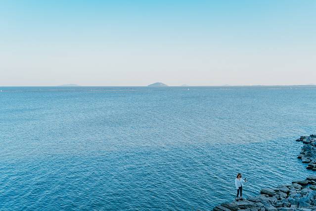 在蓝天之下,巢湖也是蔚蓝色的,这突然让我恍惚觉得是看到了大海,也让我想起了自己住在青岛的时光。